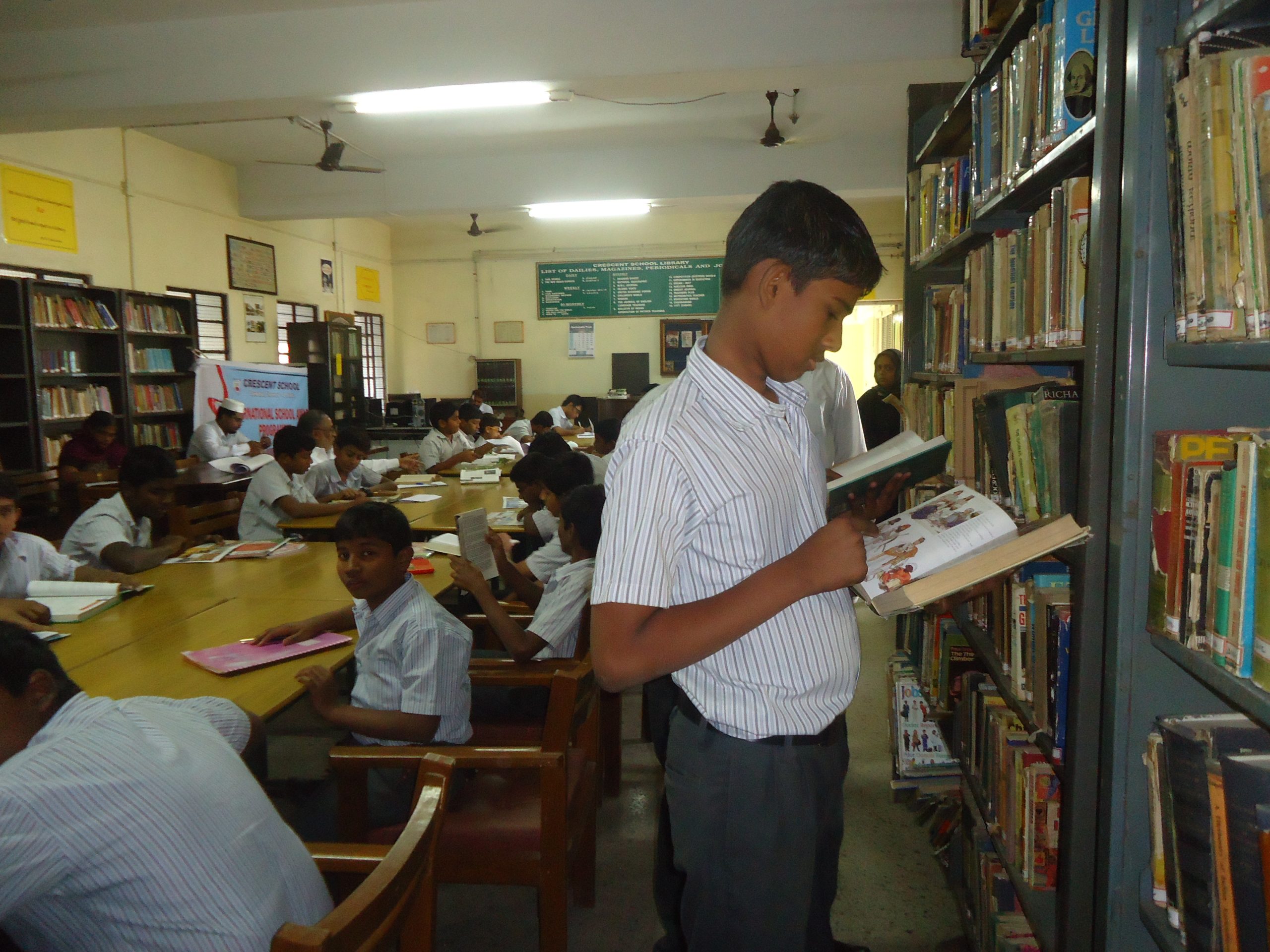 The school library has books on fiction, non-fiction, reference books of different kinds and popular journals in English, Tamil, Hindi and Arabic are available. Reference books including Dictionaries and Encyclopedias are also available.